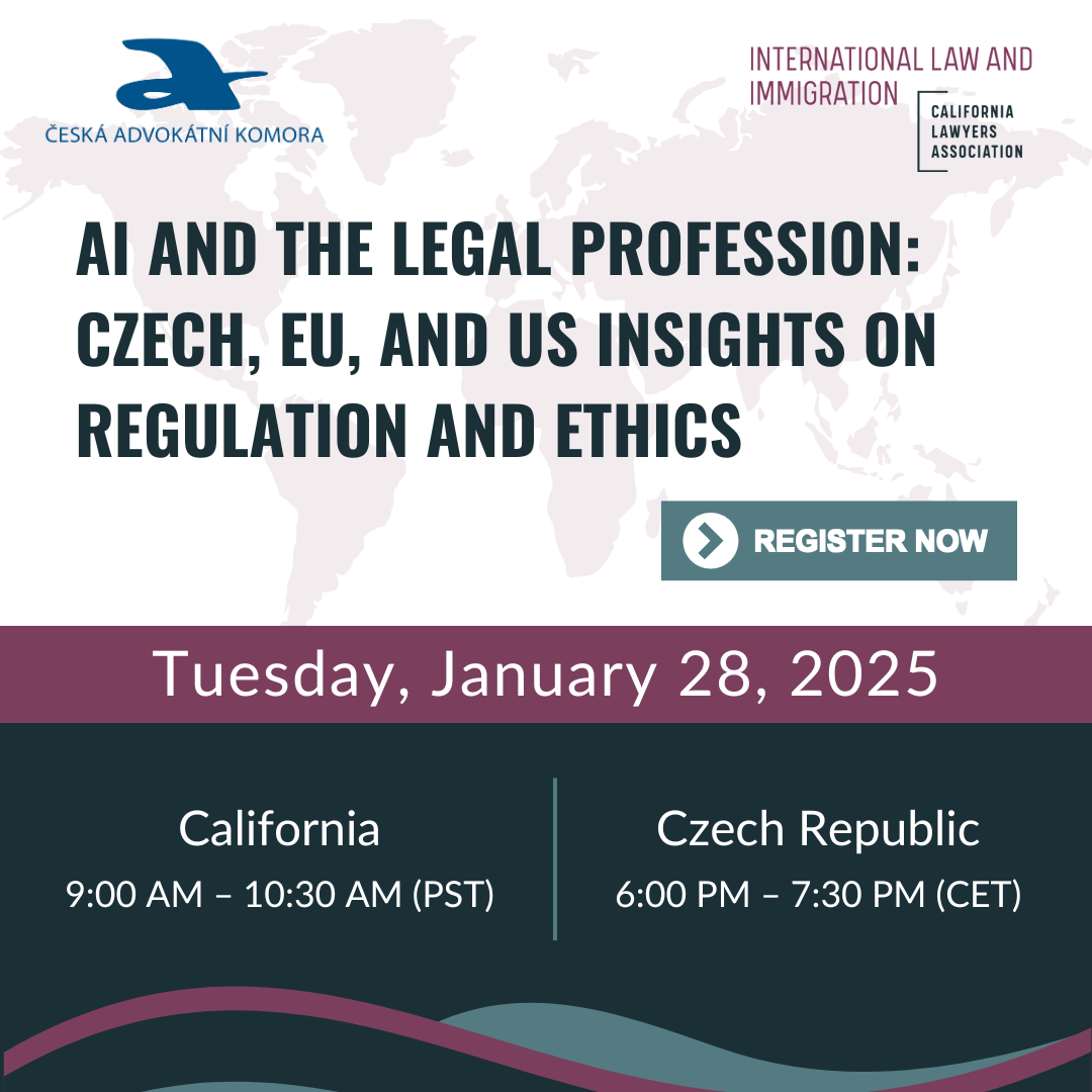 ONLINE SEMINÁŘ (webinář): AI and the Legal Profession: Czech, EU, and US Insights on Regulation and Ethics - pořadatelé: ČAK a California Lawyers Association
