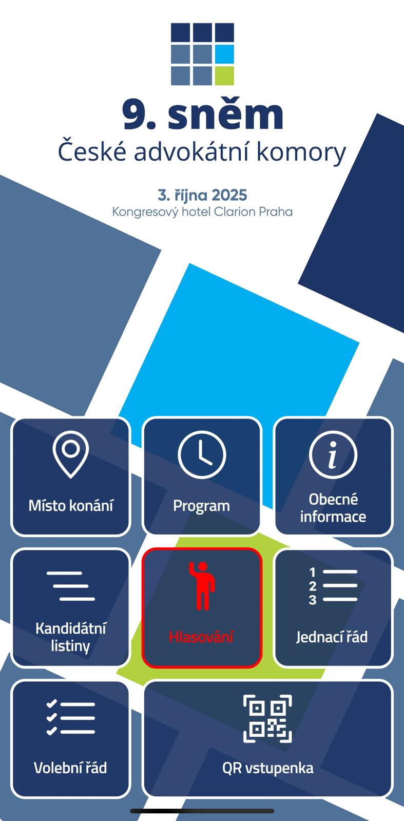 Hlasování o návrzích usnesení bude probíhat prostřednictvím aplikace 9. sněm ČAK (ke stažení: Google Play / App Store) nebo prostřednictvím webového rozhraní https://cak2025.gcon.me/.